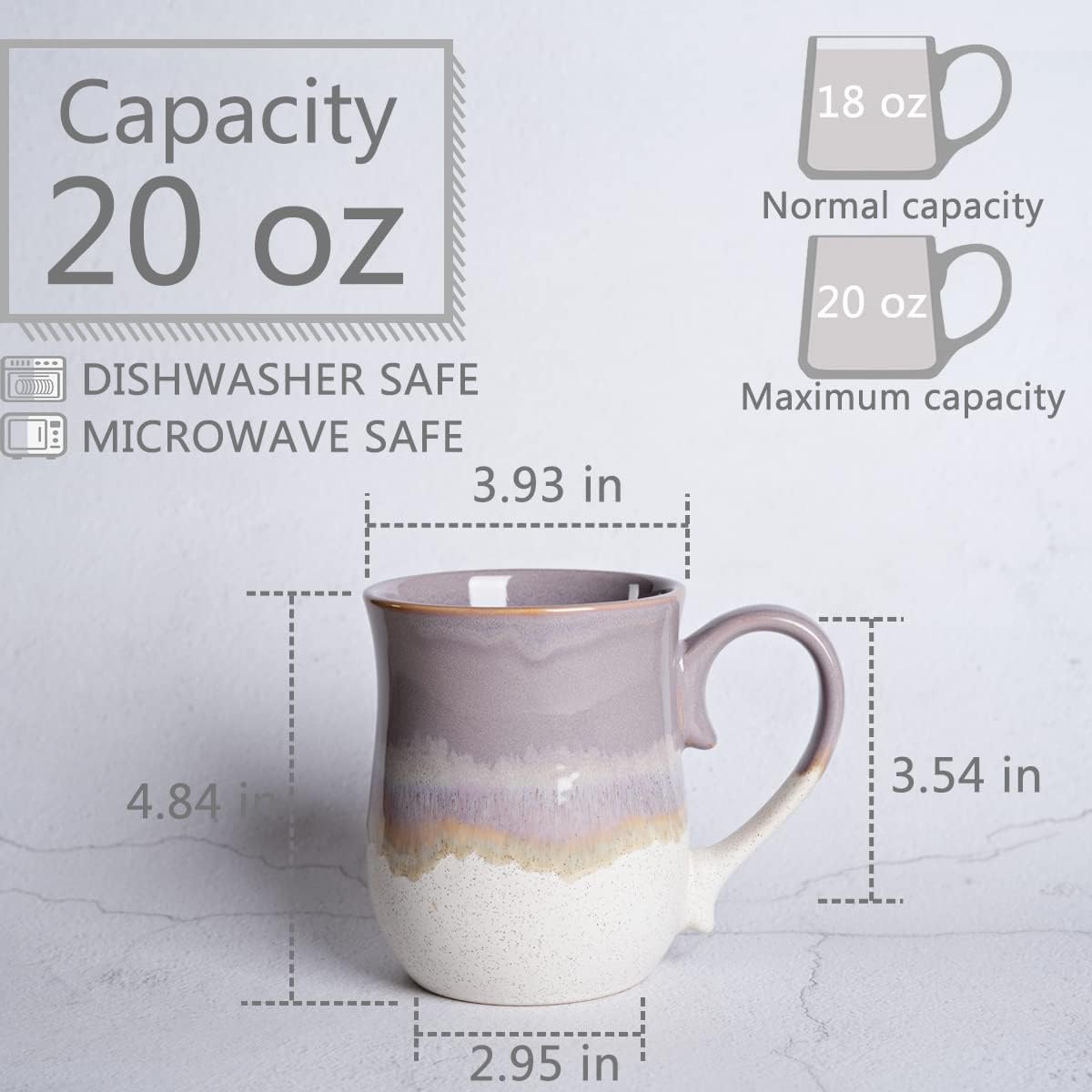 - NOTICE: This is a reactive glaze mug and every one is different. This mug has a large capacity(20 oz), which will definitely meet your needs for office and home.